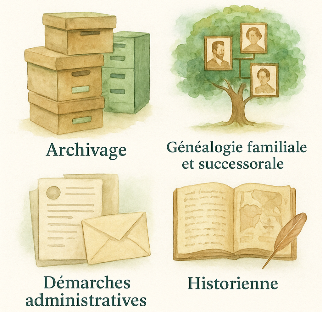 Ma mission est simple : vous libérer du poids administratif, valoriser votre patrimoine documentaire et familial, et vous permettre de vous concentrer sur l’essentiel.
